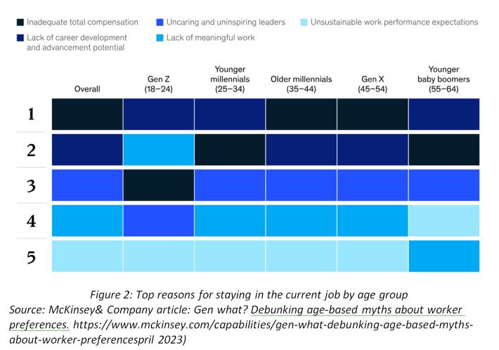 A McKinsey global survey (2022) of over 30,000 employees found that Gen Z prioritizes four things more than previous generations (see Figure 2):